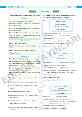 1. Read the dialogues and write True (T) or False (F). 2. Complete the phone conversations with the