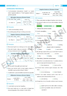 I / You / We / They prefer noun / V ing � Ő They would rather not kitesurfing than rock climbing.