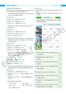 Ő boring (sıkıcı) → more boring (daha sıkıcı) 5) Bungee jumping is safer than canoeing.