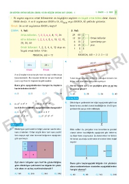 ise A ile B’nin EBOB’u aşağıdakilerden hangisidir? şeklinde iki parça elde edilmiştir.