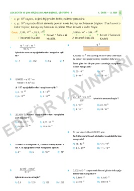 ÇOK BÜYÜK VE ÇOK KÜÇÜK SAYILARIN BİLİMSEL GÖSTERİMİ - 1 1. ÜNİTE – 12. TEST 31