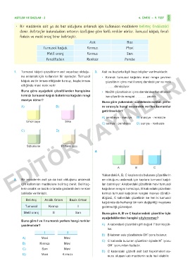 tabloda verilmiştir. kırmızı turnusol kağıdının rengini maviye döndür-