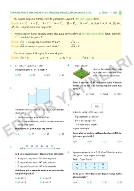 TAM KARE POZİTİF TAM SAYILAR VE BU SAYILARIN KAREKÖKLERİ ARASINDAKİ İLİŞKİ 2. ÜNİTE – 1. TEST 37