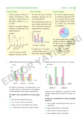 elde edilen grafiğe çizgi gra- • Sütun grafiklerinde veriler ya- Daire grafiğinde daire dilimi