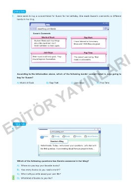 7. Jane wants to buy a concert ticket for Susan for her birthday� She reads Susan’s comments on different