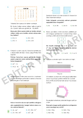 Buna göre Ekim ayında hafta içi üretilen ekmek 13. Kenar uzunlukları x birim olan kare, şekildeki gibi