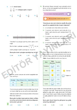 11. İki farklı yüzme kursuna ait ücretler aşağıdaki tab- Çarşamba 16 ̊C Yağmurlu