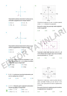 11. K(-10, -8) noktasının koordinat sisteminde y ek- Batı F Doğu