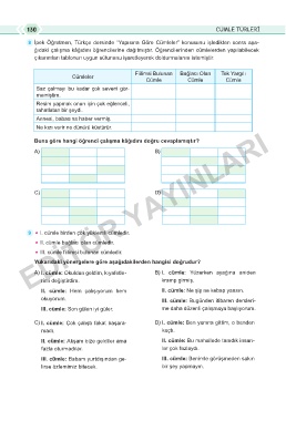 ğıdaki çalışma kâğıdını öğrencilerine dağıtmıştır. Öğrencilerinden cümlelerden yapılabilecek