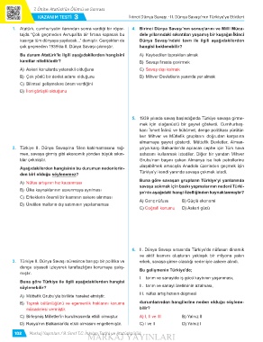KAZANIM TESTİ 3 kinci Dünya Sava - II. Dünya Sava’nn Türkiye’ye Etkileri