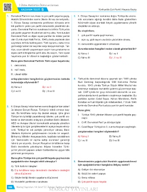 KAZANIM TESTİ 5 Türkiye’de Çok Partili Hayata Geçi