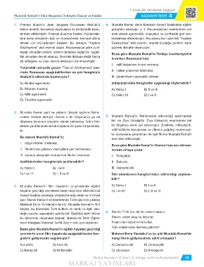 Mustafa Kemal’in Fikir Hayatını Etkileyen Olaylar ve Kişiler KAZANIM TESTI 4