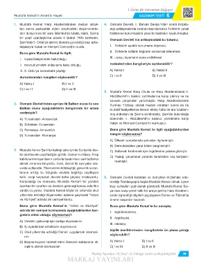 Mustafa Kemal’in Askerlik Hayatı KAZANIM TESTI 5
