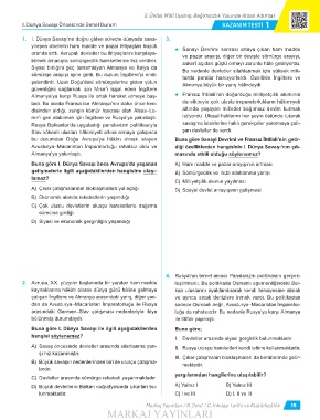 I. Dünya Savaşı Öncesinde Genel Durum KAZANIM TESTI 1