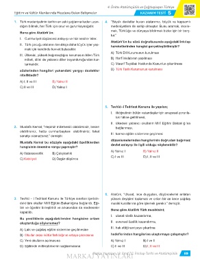 Page 69 - 8. SINIF T.C. İNKILAP TARİHİ VE ATATÜRKÇÜLÜK DUBLEKS KAZANIM ODAKLI SORU BANKASI