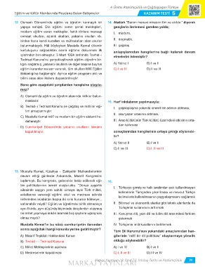 12. Osmanlı Dönemi’nde eğitim ve öğretim karmaşık bir 14. Atatürk “Benim manevi mirasım ilim ve akıldır.” d�yerek