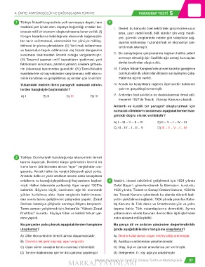 4. ÜNTE: ATATÜRKÇÜLÜK VE ÇAĞDALAAN TÜRKYE PARAGRAF TESTİ 5
