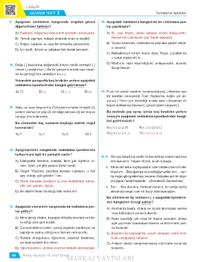 KAZANIM TESTİ 1 Noktalama İşaretleri