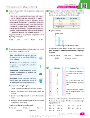 9 Aşağıda Derya’nın bir bilim dergisinde okuduğu parça 11 Tolga Öğretmen, öğrencilerinden tablodaki maddeleri