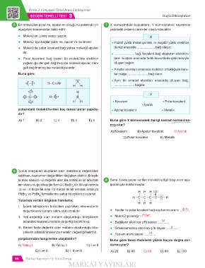 değerliklerin toplamı sıfıra eşit olmalıdır. ◆ Apolar ile polar kovalent bağ sayılarının oranı: .............