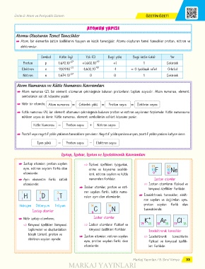 Ünite 2: Atom ve Periyodik Sistem ÖZETİN ÖZETİ