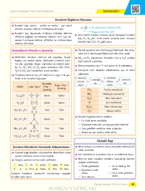 çiftlerine bağlayıcı (ortaklanmış) elektron çifti, bağ olu- Q Aynı ametal atomları arasında apolar (kutupsuz) kovalent