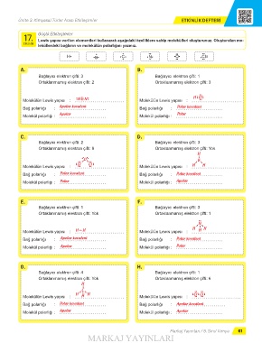 Lewis yapısı verilen elementleri kullanarak aşağıdaki özelliklere sahip molekülleri oluşturunuz. Oluşturulan mo-
