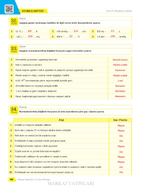 ETKİNLİK DEFTERİ Ünite 4: Maddenin Halleri