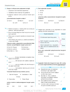 13. Simyacı ve kimyacıların çalışmaları ile ilgili; 16. Eski çağlardaki insanlar;