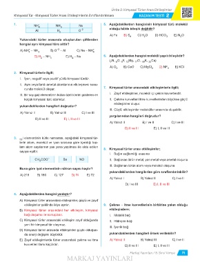 Page 71 - 9. SINIF KİMYA FAVORİ KAZANIM SORU BANKASI