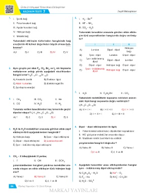 noktalarının arttığı yönde aşağıdak� n�cel�klerden E) dipol Hidrojen bağı Dipol - dipol