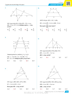 Üçgenlerde Orantl Doğru Parçalar KAZANIM TEST 8