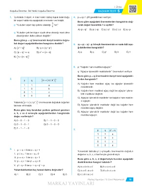 1. İçerisinde 3 siyah, 4 mavi renkli özdeş topun bulunduğu 4. p ⇔ q ≡ 1 çift gerektirmesi veriliyor.