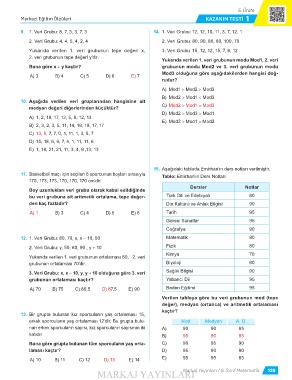 Merkezi Eğilim Ölçüleri KAZANIM TEST 1