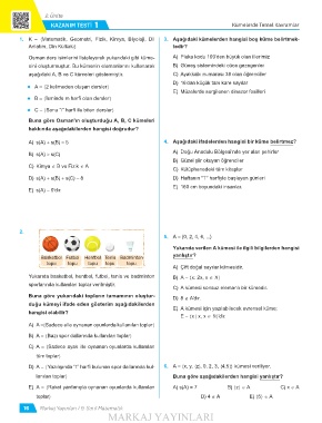 KAZANIM TESTI 1 Kümelerde Temel Kavramlar