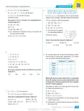 Kümelerde Birleşim - Kesişim İşlemleri KAZANIM TESTI 3