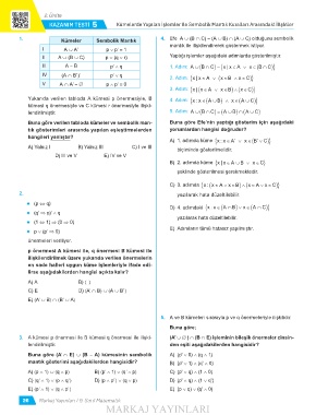 KAZANIM TESTI 5 Kümelerde Yapılan İşlemler ile Sembolik Mantık Kuralları Arasındaki İlişkiler