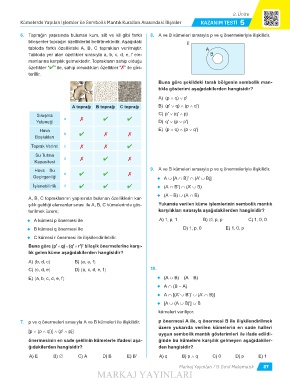 Kümelerde Yapılan İşlemler ile Sembolik Mantık Kuralları Arasındaki İlişkiler KAZANIM TESTI 5