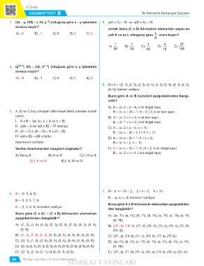 KAZANIM TEST 8 ki Kümenin Kartezyen Çarpm