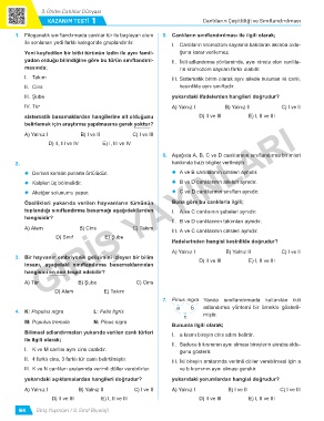 KAZANIM TESTI 1 Canlıların Çeşitliliği ve Sınıflandırılması
