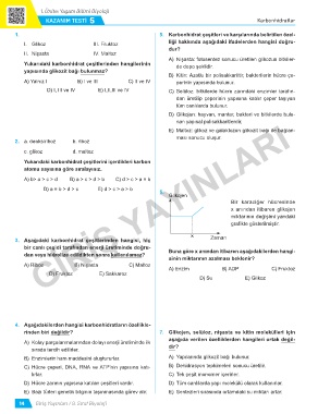 D) I, III ve IV E) I,II,III ve IV C) Selüloz: bitkilerde hücre zarındaki enzimler tarafın-