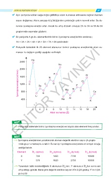 F Yukarıdaki tablo incelendiğinde X atomunun İE ’den, Y atomunun İE ’ten sonra ani