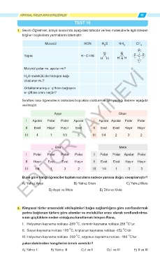 1. Sevim Öğretmen, kimya sınavında aşağıdaki tabloda verilen moleküllerle ilgili istenen