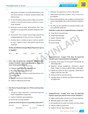 Orta Çağ’da Devlet ve Toplum KAZANIM TESTI 1