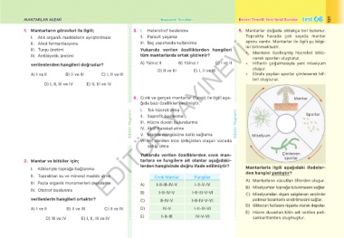MANTARLAR ALEMİ Kazanım Soruları Beceri Temelli Yeni Nesil Sorular test 06 131