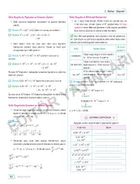 ̛ Örnek: 0,06 . 10 + 3 . 10 işleminin sonucunu bulalım. ̛ Örnek: 70000 = 7 . 10 ve 0,00008 = 8 . 10 olduğuna