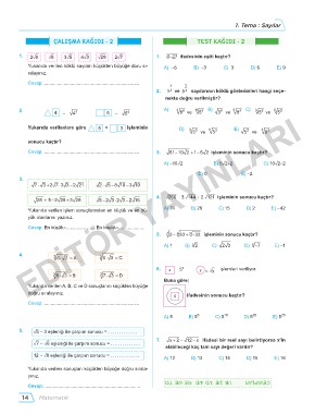 ÇALIŞMA KAĞIDI - 2 TEST KAĞIDI - 2