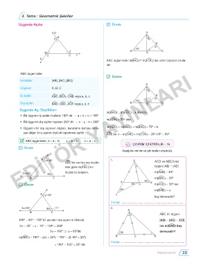 İç açılar: AéBC, BéCA, CéAB veya a, b, c E