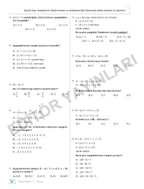 15. Aşağıdakilerden hangisi B = {x | 3 < x ≤ 5, x ∈ N} C) s(N ∩ S) = 2