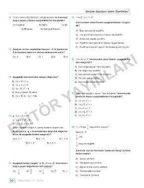 D) Her yıl Şubat 28 çeker. 17. “Bazı reel sayıların karesi 1’den büyüktür.” önermesinin